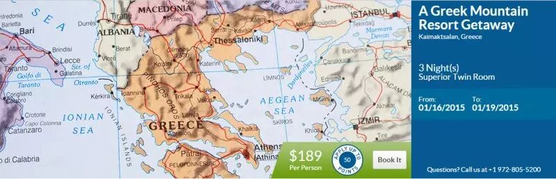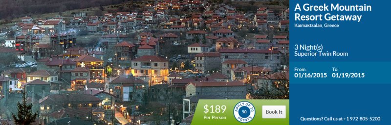 4天3夜在Domotel Neve的山度假村,Paleos贴水阿萨纳西,58002,希腊。电话:+302381039800.价格是每人2名成人每间客房。