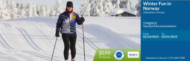 体验挪威滑雪乐趣 6天5夜wv梦幻之旅599美元( 会员抵扣270积分)2015年2月24日~3月1日