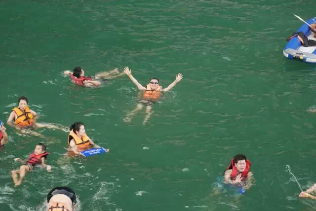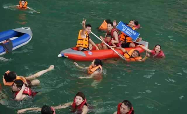 最嗨最挑战体力的游泳时间,看似平静实际波澜起伏的海面,让不少不熟水性的会员尝到了点“海带汤”,大家还是玩得很嗨,小蓝旗也在海面上不断展开