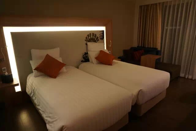 结果呢,到了机场外面,就有泰国的可爱小妹妹拉着“You Should Be Here"的小旗子,然后还很快安排了一部小轿车送我们到酒店,顺利的办理了入住然后到房间休息了,第一感觉几乎就是满分!