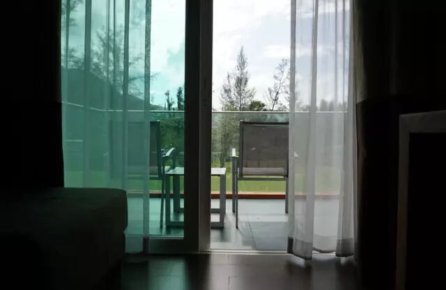 这个带两张休闲椅的面朝后花园的阳台,就是小编入住的房间。