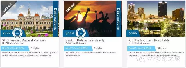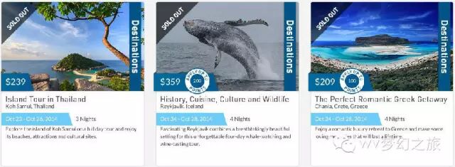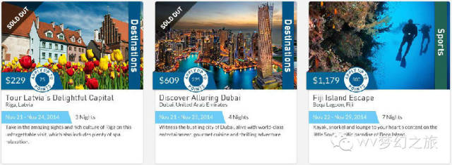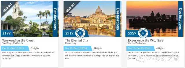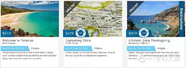 我们惊喜的看到,绝大部分旅行套餐在投放市场不久便被抢购一空,“SOLD OUT ”(售罄)的字样在套餐图案左上角高高挂起,抢到者自然得意,有成就感,而后来者也只有望洋兴叹的份了,甚至有些失落,从这一现象我们可以看到公司的新动态: