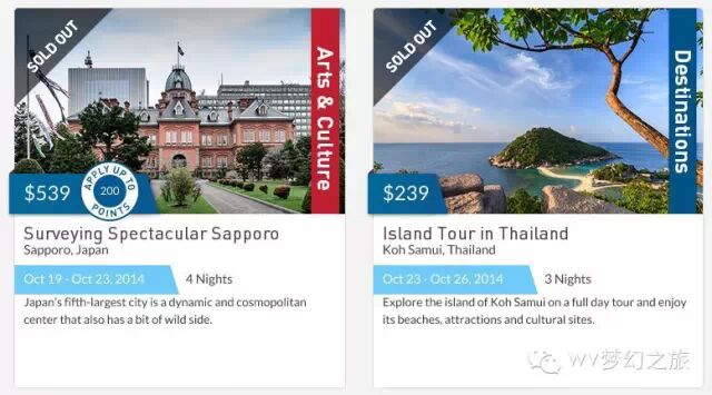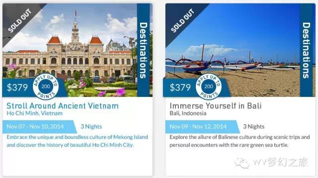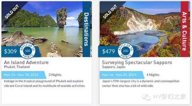 想在2014年仅剩的三个月时间亚洲范围内享受一下梦幻之旅,于是在www.dreamtrips.com中,Filter By Region选择Asia,时间从2014年10月1日~2014年12月31日