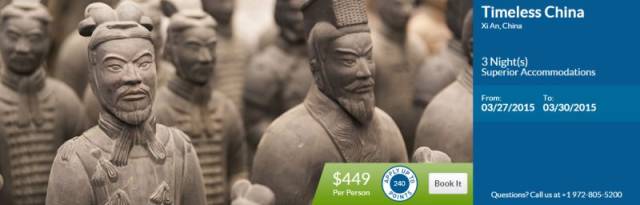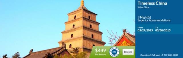 4天3晚在西安索菲特人民大厦,319董鑫街,陕西,西安710004,中国。电话:+862987928888价格为每人2名成人每间客房。