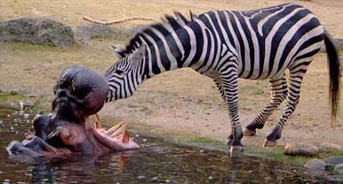 7.夏天非常热,斑马去河边喝水,正好看见河马在河里玩,斑马就想它能玩为什么我不能玩啊。斑马就跳下去玩,可没一会鳄鱼就把它咬死了。