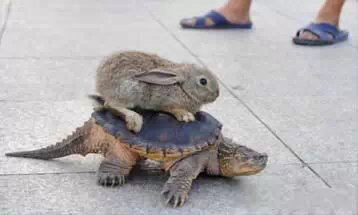 1.乌龟在地上是跑不过兔子,可乌龟在水里永远比兔子游的快。