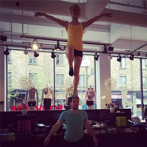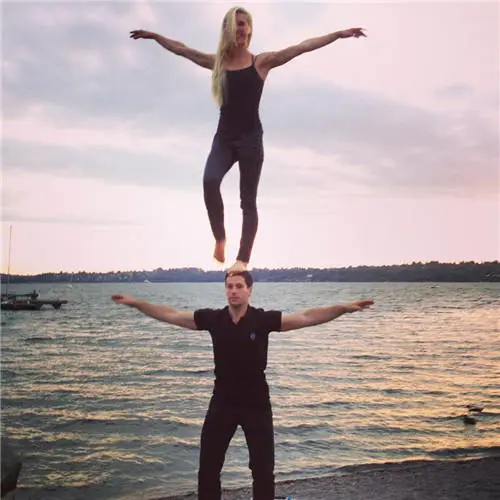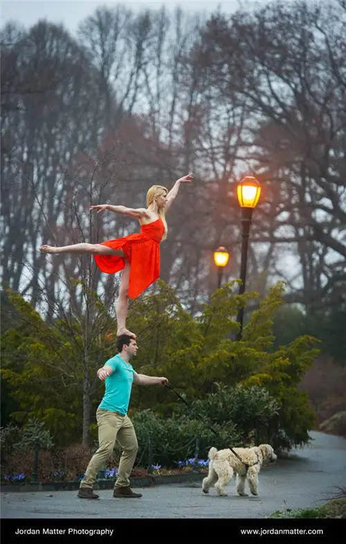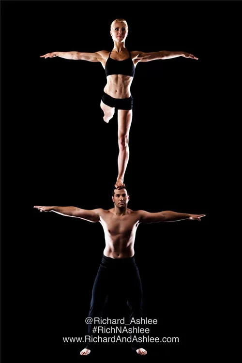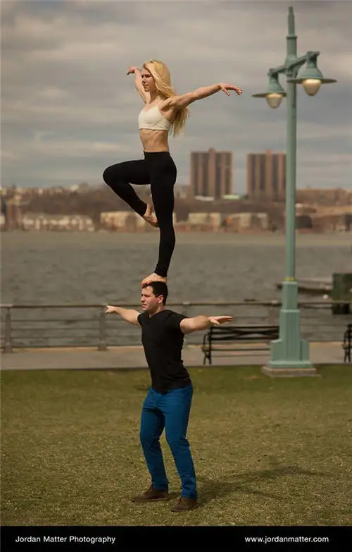 原来他们两个同是马戏团的表演艺术家,难怪拍这种照片对他们来说轻而易举,女生甚至打趣的说:“常有人在派对上要求我们表演,大家可以猜猜看有哪些照片我们是清醒或是喝醉的时候拍下。”