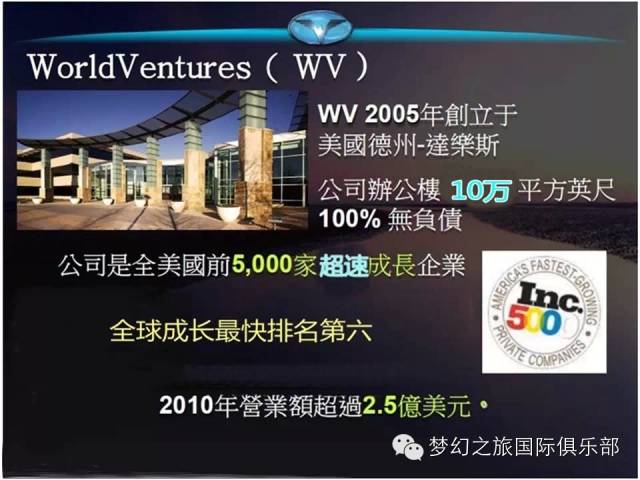 WV目前是世界直销百强中唯一一家用旅游度假作为产品的