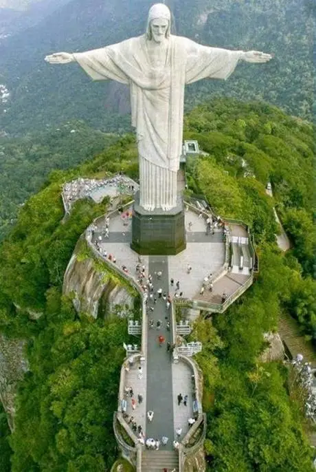 里约热内卢的基督救世主雕像坐落在国家森林公园中高710米的科科瓦多山顶之上,俯瞰着整个里约热内卢市。它是该市的标志,也是世界最闻名的纪念雕塑之一。耶稣张开双臂欢迎来自世界各地的游客,是巴西人民热情接纳和宽阔胸怀的象征。