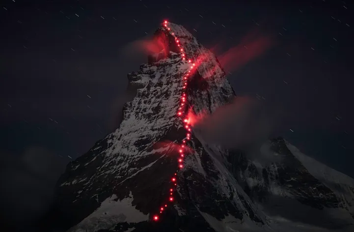 阿尔卑斯登山者火炬链(Mountaineers scaling the Alps by Robert Boesch)