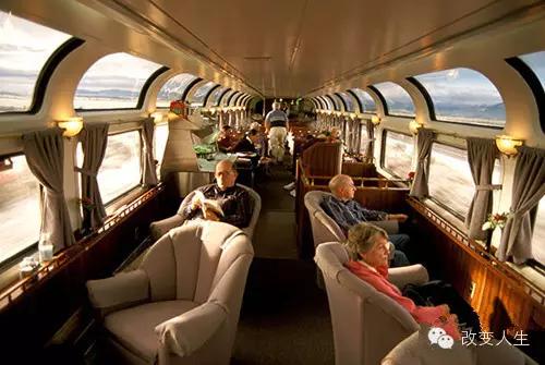 这是美国AMTRAK公司的火车车厢。沿着西海岸的这条铁路线沿途景色包括太平洋、旧金山湾、森林、瀑布、沙漠和群山,有专用车厢辟为儿童乐园。