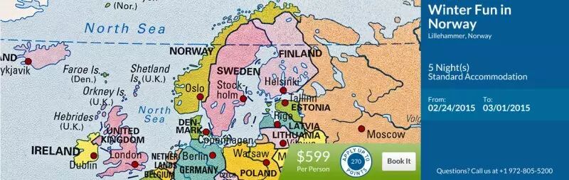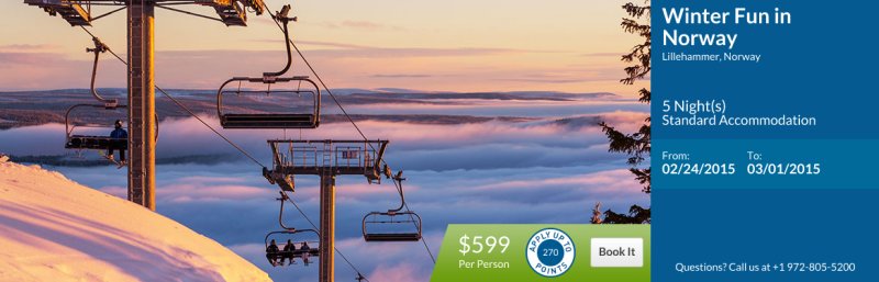 体验挪威滑雪乐趣 6天5夜wv梦幻之旅599美元( 会员抵扣270积分)2015年2月24日~3月1日