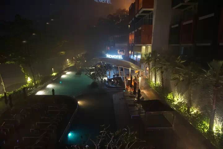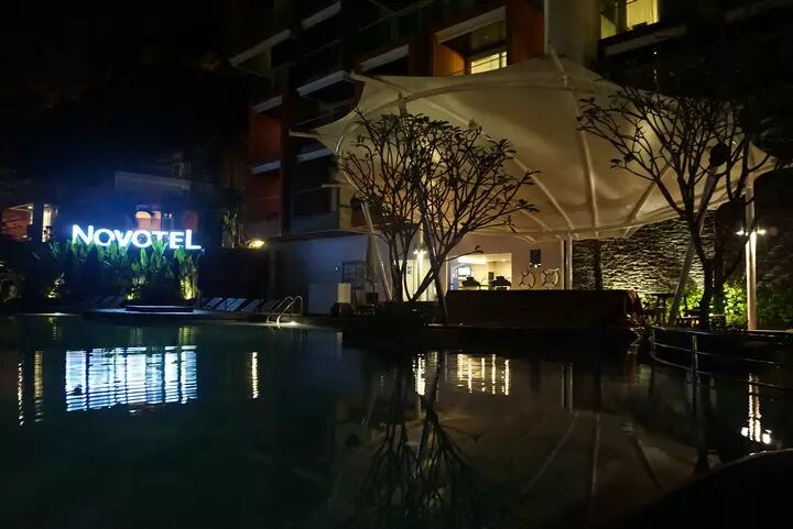 天一黑,突然下起了大暴雨,雨中的Novotel是不是很有意境,以至于三两个老外仍泡在水中靠在泳池酒吧边上小酌