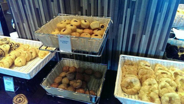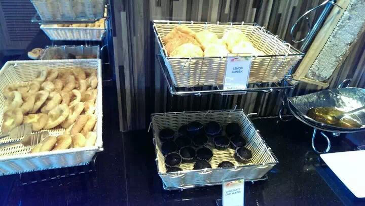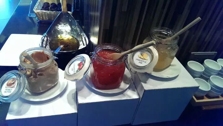 酒店的自助早餐相当赞,目测不算调料和果酱至少都有五十个左右品种,基本属西式餐点,很照顾欧美客人的饮食习惯,光面包苹果派菠萝派蛋挞等面点就有二十种。