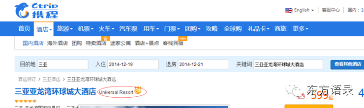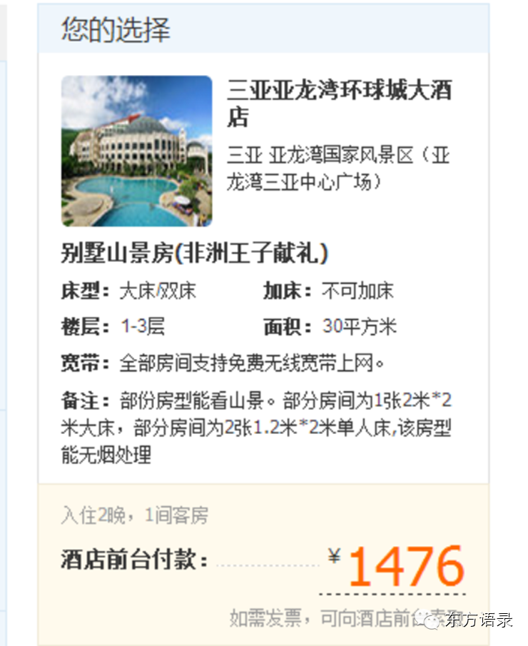当我订成功后,就到携程网站看看,找到了相同酒店,携程的价格为1476元,大约240美金,接下来我在携程截图。