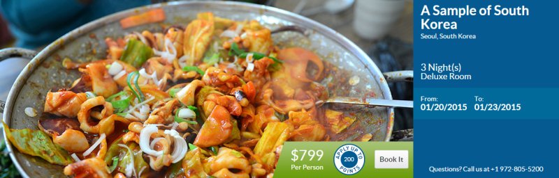 航空运输是不包括在内。最近的商业机场是仁川国际机场(ICN)。参观DreamTrips.com并选择“预订其他旅游”选项卡购买机票。