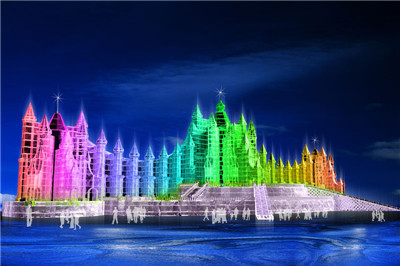 哈尔滨冰雪大世界规划总占地面积40万平方米,计划用冰量12万立方米,用雪量8万立方,总用电量7000KVA。全园冰雪艺术作品2000余件。