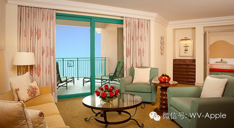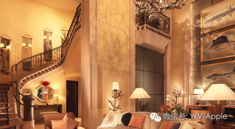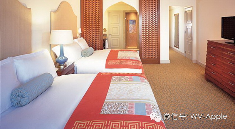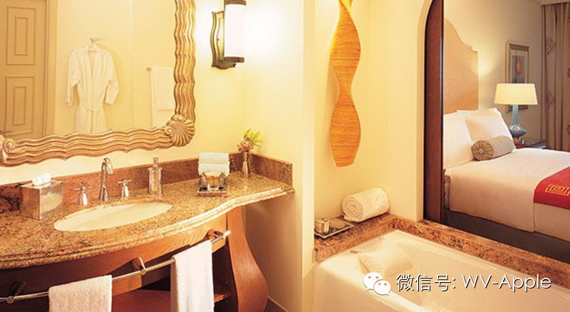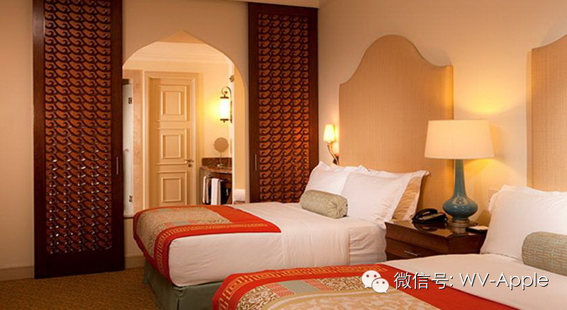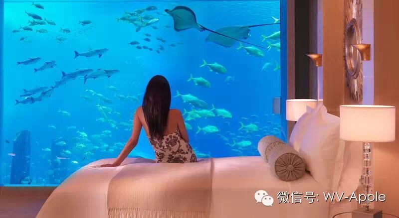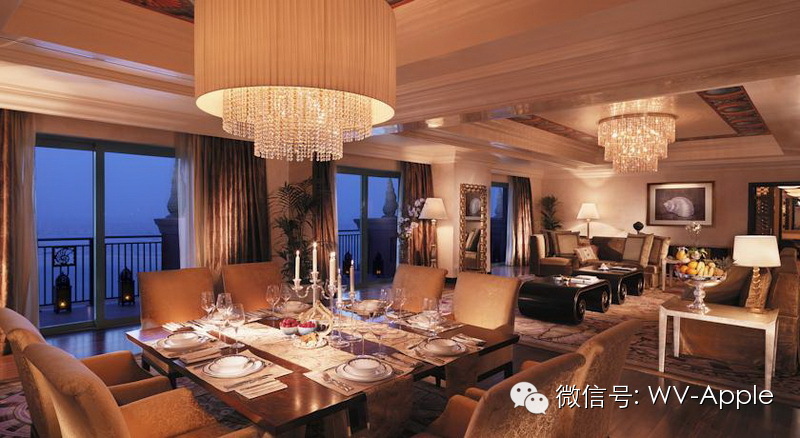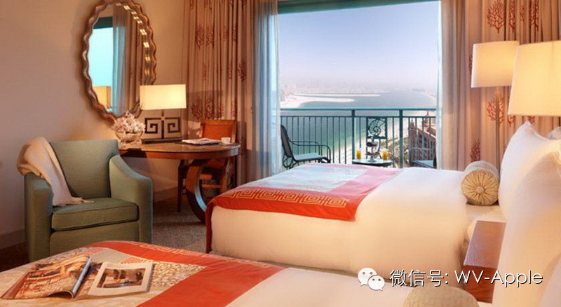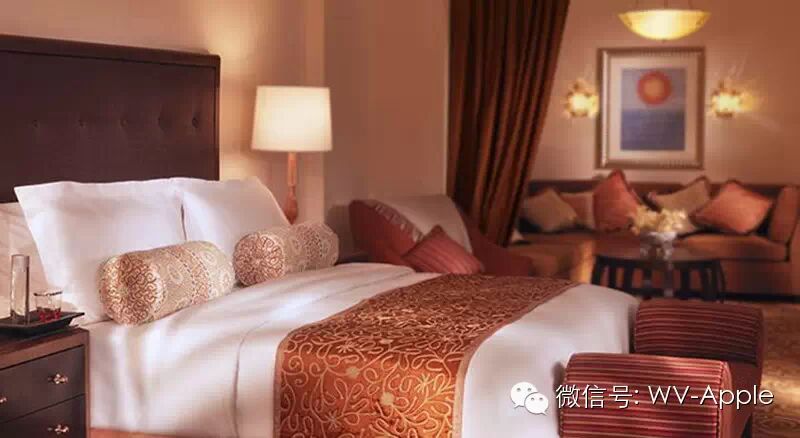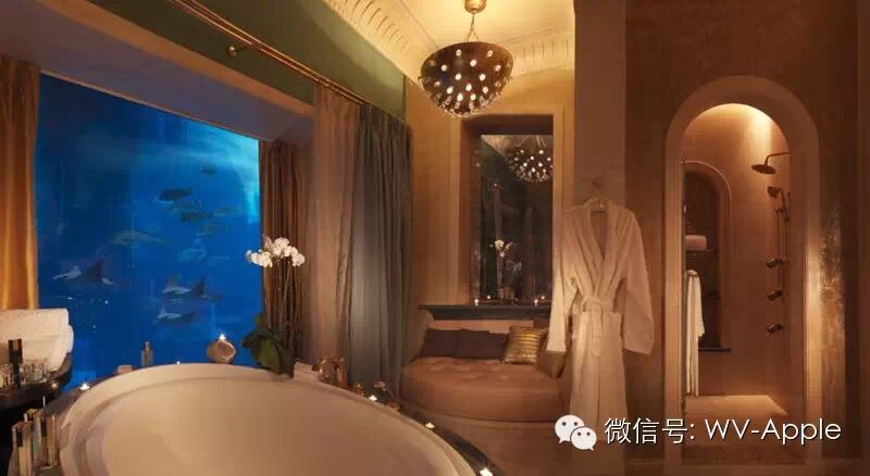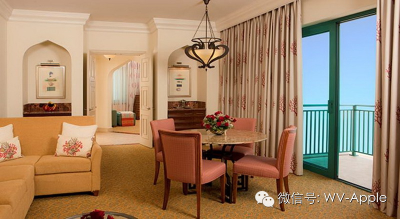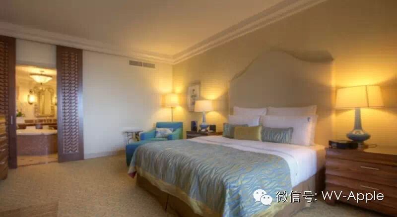 內的任何一間客房,均可攬勝風光優美的阿拉伯灣或棕榈島。最顯奢華的天橋套房橫跨酒店的東西兩座塔樓,占地924平米,私人電梯,落地天窗,三間臥室盡覽傲人海景。而最令人歎爲觀止的當屬“失落的空間”超級豪華套房。從套房臥室的落地窗能夠直望礁湖大使水族館內令人神往的的水下海底世界。這類套房僅有兩間,分別被命名爲尼普頓海神套房(Neptune Suite)和波塞頓海神套房(Poseidon Suite),各自占據了酒店的三個樓層。