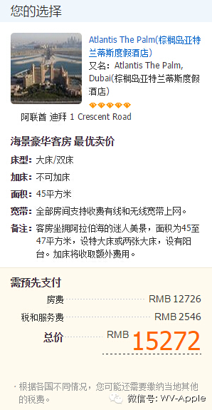 ******4天3晚,亞特蘭蒂斯棕榈,新月路,棕榈,迪拜,阿拉伯聯合酋長國。電話+971 4 426 2000定價爲每人2名成人每間客房。