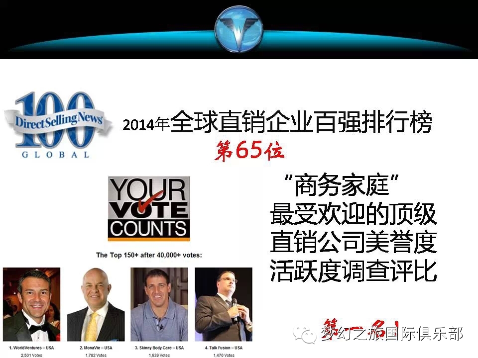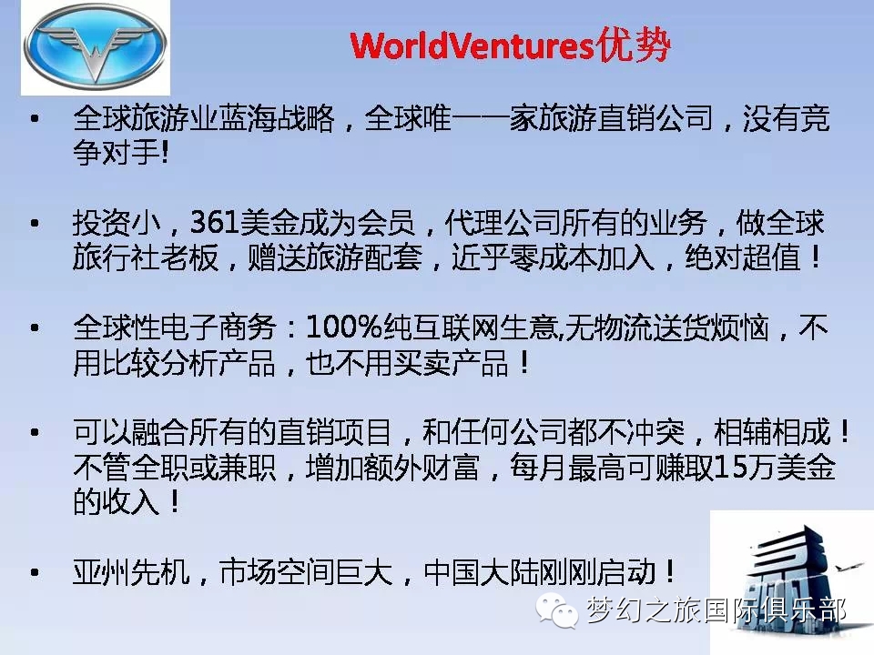 WV目前是世界直销百强中唯一一家用旅游度假作为产品的