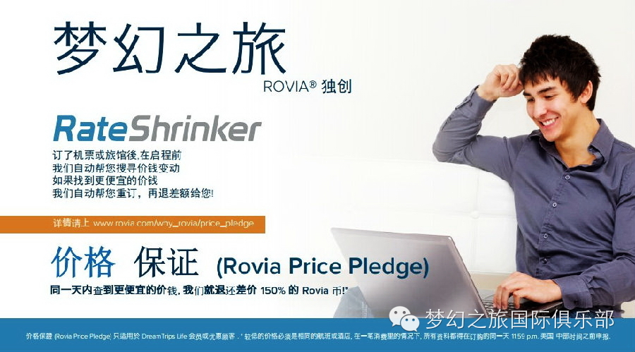 - 机票酒店均享受最低价格保证(Rovia Price Pledge),差额可赔付1.5倍美元积分