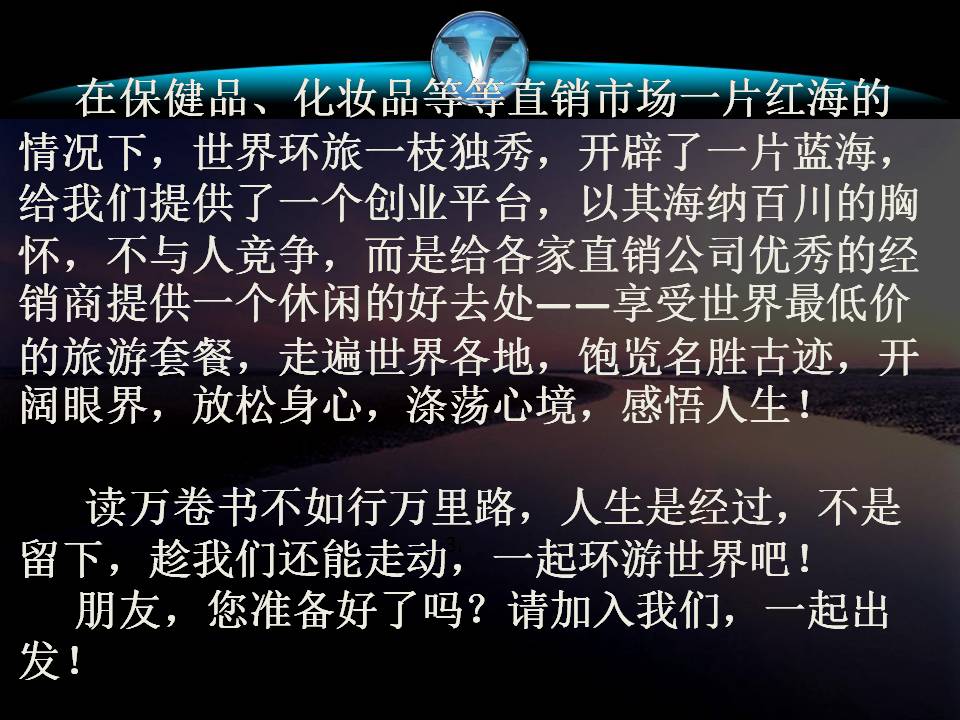 至少在未来的中国,WV也是直销行业里唯一一家做旅游度假的。