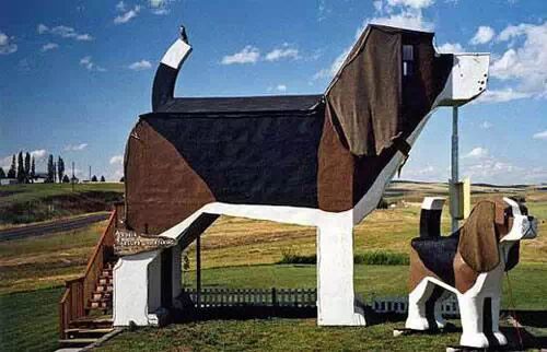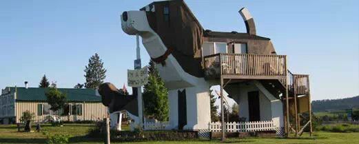 喜爱狗狗的你,千万不能错过狗吠公园酒店。它坐落于美国爱达荷州的白杨木(Cottonwood),酒店造型模拟狗的外形。房间可容纳4人住宿,配备浴室、微波炉、空调、书籍、游戏等,不过没有电视和电话。住宿还可享受自助型的欧陆式早餐。