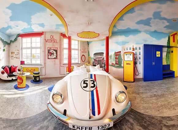 对于汽车迷的你来说,一定不要错过德国梅勒维克的V8酒店。该酒店的每间房都由独特的汽车主题设计而成,你可以睡在白色奔驰造型的床上,或是有用千斤顶支撑的卧床车间里。酒店不仅设计独特,服务也周到友好,每间房都有CD播放器、无线网,还提供免费停车和洗衣服务。