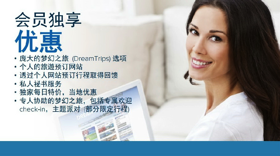 梦幻之旅是由Worldventures世界环旅集团推出的超值旅游配套计划,这是一个全球会员制旅游俱乐部,自2005年成立以来,已在26个国家(持续增加中)拥有数十万会员。实时更新的旅游配套遍布全球,超值劲爆!会员可携带家人订购所有超值配套,一同前往度假!